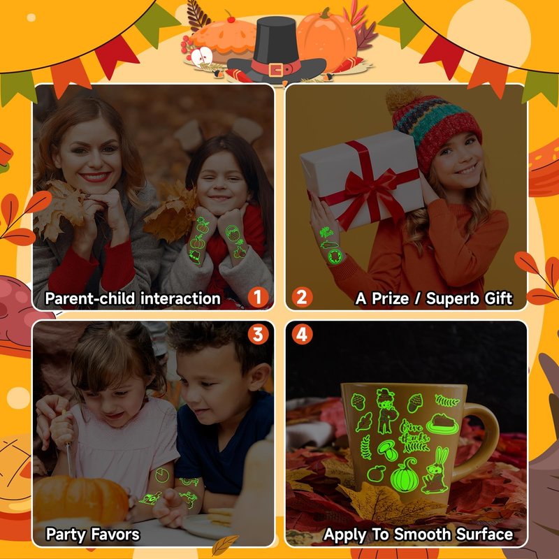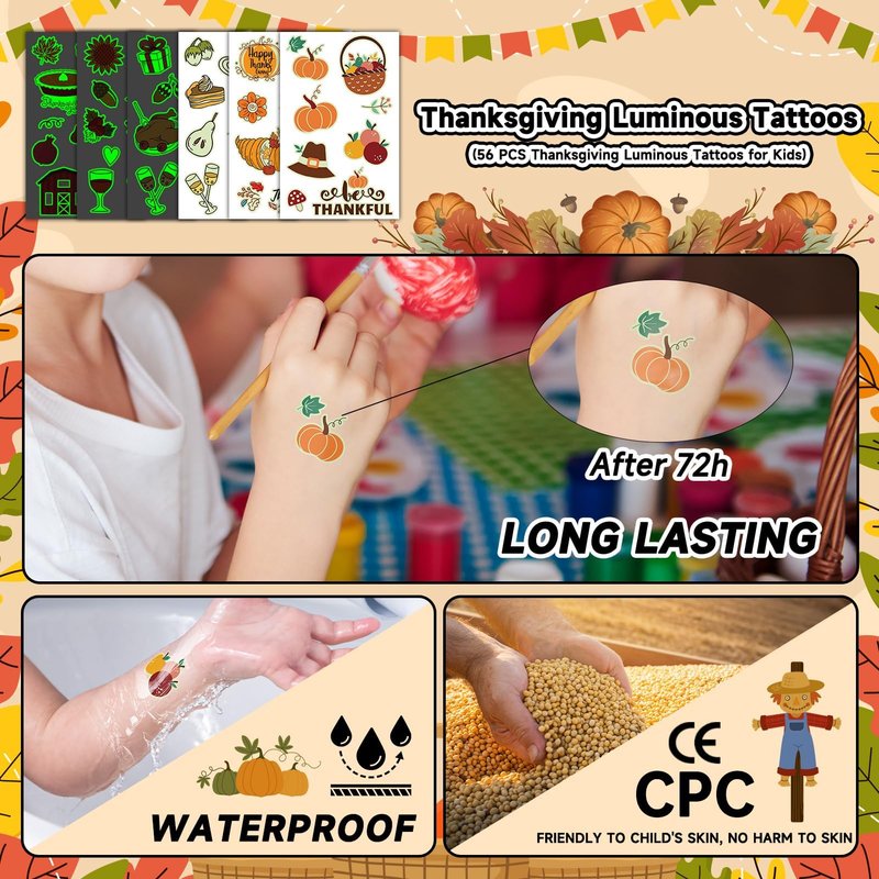 - 【Safe and Long Lasting】Fall tattoos for kids are made of good quality glue material, water-proof and scratch-resistant, safe and non-toxic, and have been put through rigorous party decorations testing. It does not harm the skin and can be maintained for about 2-15 days!