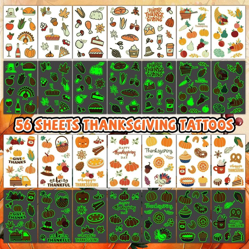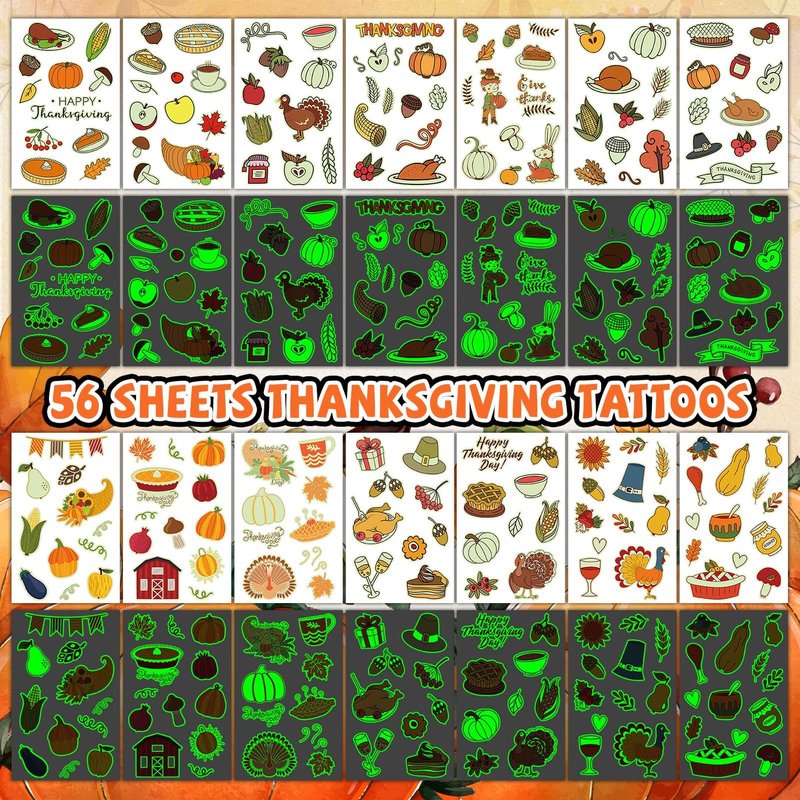 EMOME Thanksgiving Fall Tattoos for Kids, Bulk Party Favors Decorations Supplies Autumn Tattoos, Thanksgiving Games Fillers Prizes for Fall Festival Decor Activities (56PCS)