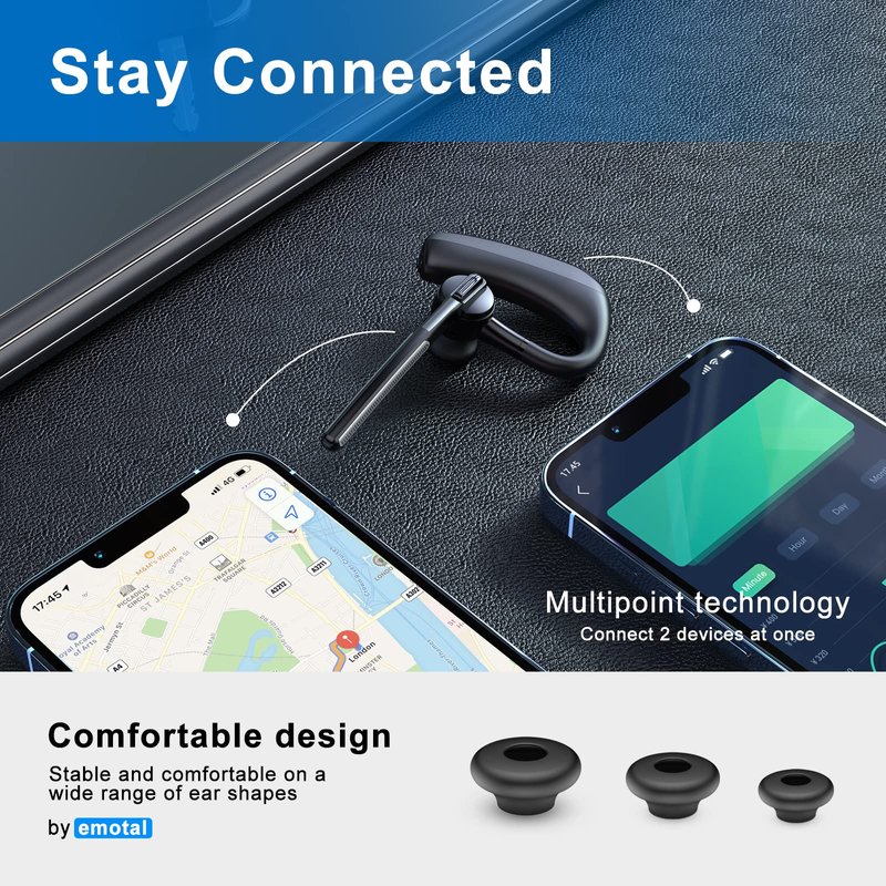 emotal Bluetooth Headset Dual-Mic ENC +CVC 8.0 Noise Cancelling Aptx HD HiFi Stereo15Hours HD Talktime 200Hours Standby Bluetooth Earpiece Compatible for iOS/Android Cellphone with Storage Case