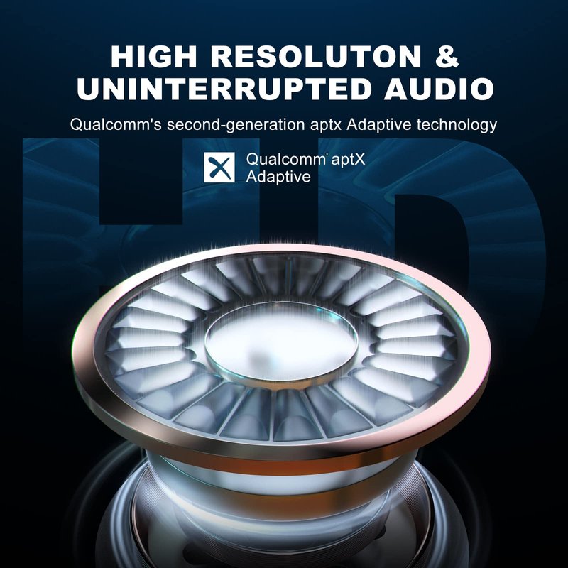 - Exceptional Music Enjoyment. Thanks to apt-X HD HIFI STEREO. Built-in Qualcomm QCC3026 chipset and 13mm PU+PEEK composite material trumpet,immersing yourself in rich and clearer superior stereo sound.