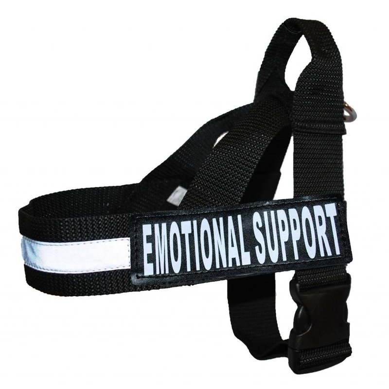 EMOTIONAL SUPPORT Nylon Strap Service Dog Harness No Pull Guide Assistance comes with 2 reflective EMOTIONAL SUPPORT removable patches. Please measure your dog before ordering.
