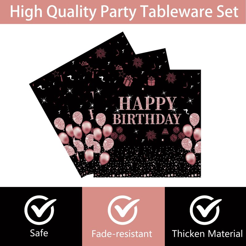 - Elegant Rose Gold Design: Featuring a sophisticated black background with rose gold accents with a bold "Happy 13th Birthday" font against a black background,these plates are adorned with elements like banner,balloons,pink diamonds.The beautiful and novel design creates a rich party ambiance that will impress your family and friends.