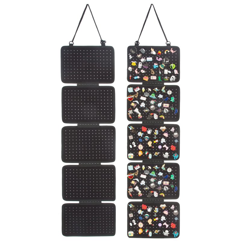 Enamel Lapel Pin Display Panels Organizer With 5 Loose-leaf Board Pieces, Hanging Brooch Pin Organizer, Badge Collection Display Pages Holds At Least 200 Pins.(pins Not Included) Hanging Enamel Pin Wall Display Banner Panels Size: 106.5 x 30 cm / 41.92 x 11.81 in, each board size: 20.5 x 30 cm / 8.07 x 11.81 in. Super Size, Large Capacity! It can very organize and display your brooch pins, enamel pins, lapel pins, badges, buttons. Display Your Collectible Pins In Any 5 Loose-leaf Board Pieces: 5 panels boards can be grouped together, be a hanging pins organizer, and the pages lay flat with pinbacks and no sagging!