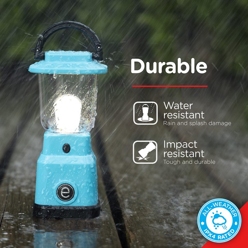 - Compact Lantern – Durable, impact resistant and IPX4 rated against the elements – perfect for outdoors, deck, patio, camping, tailgating, emergency lighting, power outages, tornadoes, hurricanes and more
