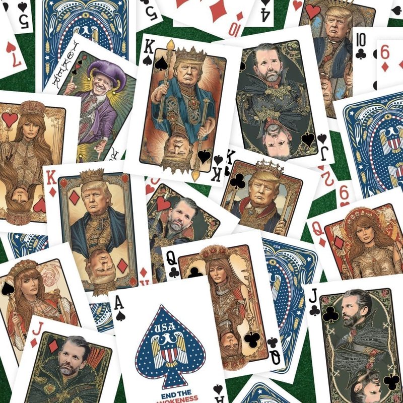END THE WOKENESS: Trump Family Poker Playing Cards - Premium Collectible Deck Featuring Trump, Melania, Trump Jr., and Biden Joker Cardstock for Poker Nights - 52 Cards + 2 Jokers, Standard