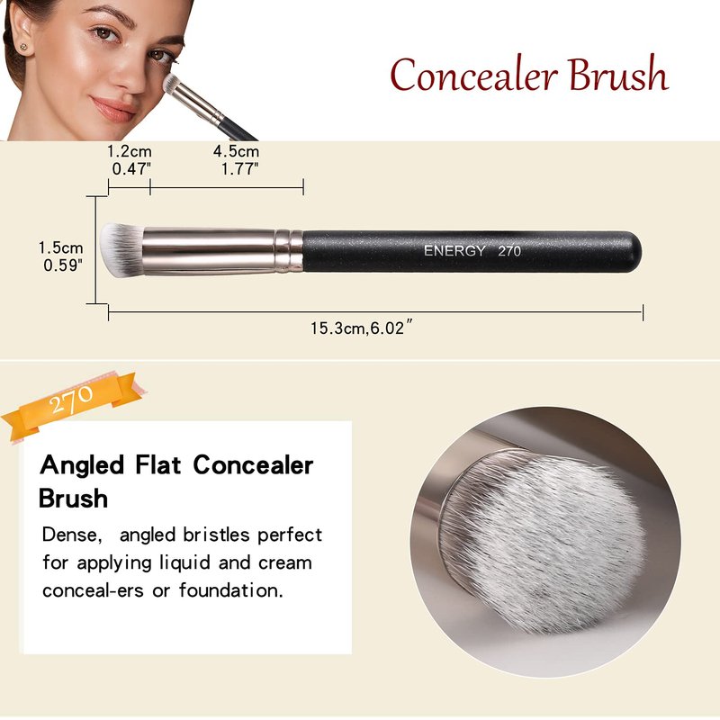 - Concealer Brush Set 3pcs:This is the best collection of concealer brushes to Make the application process quick and simple.Good flawless makeup tools for powder, liquid, concealer, cream, blush, concealer, foundation cosmetics.Choose ENERGY brushes to create a natural and poreless makeup look.