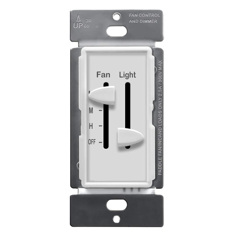 - Dual slide controls; Slider for fan is 3 speeds (not for variable type fans or remote controlled), slider for lights provides for smooth dimming with a noticeable click off when moving slider past the dimmest position