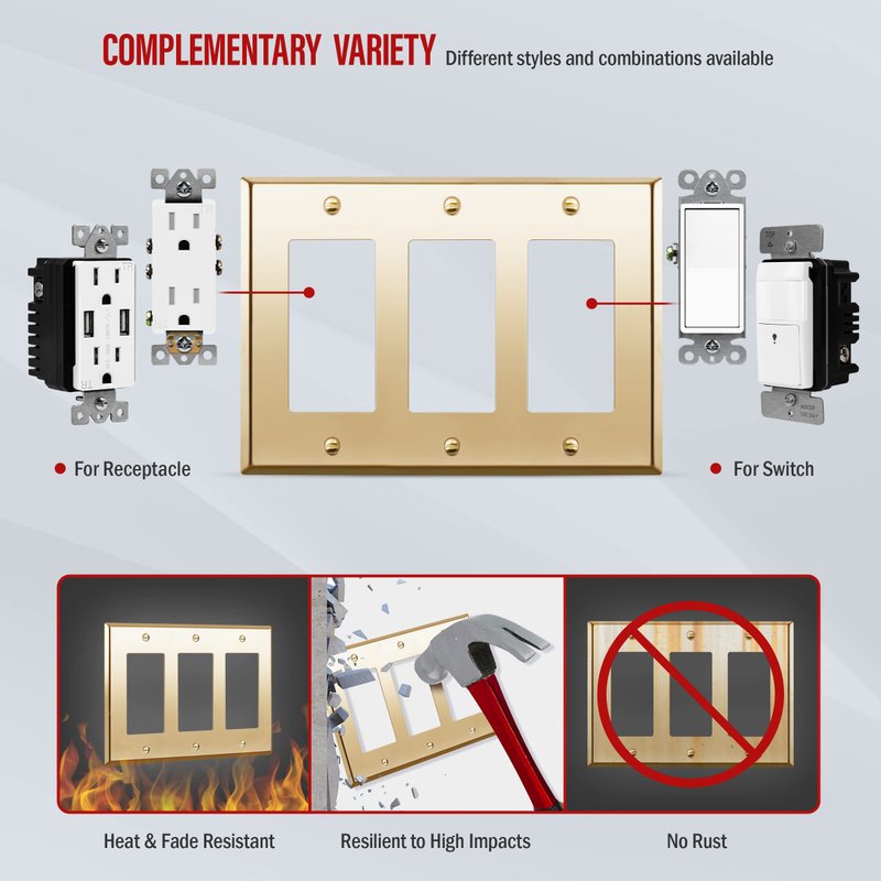 - Brass plated stainless steel 201 provides high-impact resistance against heavy force; limited access to wiring due to wall plate breakage associated with nylon and plastic covers