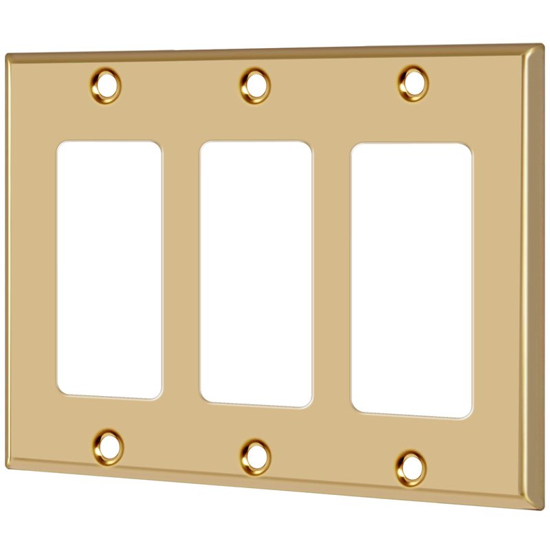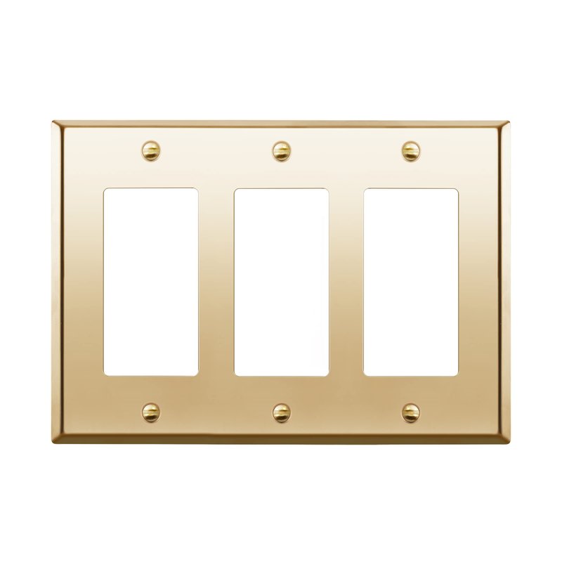 ENERLITES Metal Decorator Switch or Outlet Metal Wall Plate, Stainless Steel 201, Corrosion Resistant, Size 3-Gang 4.50" x 6.38", 7733-PB, Polished Brass, Gold