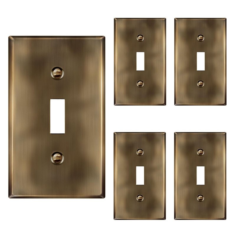 ENERLITES Toggle Light Switch Metal Wall Plate, Stainless Steel Switch Cover, Corrosion Resistant, Standard Size 1-Gang 4.50" x 2.76", Stainless Steel 201, 7711-AB-5PCS, Antique Brass, 5 pack
