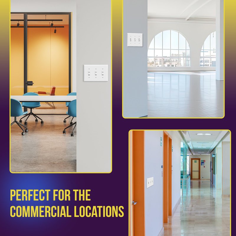 - Easy replacement of any 3-gang wall plate of the same configuration; standard size dimensions: 4.5" height x 6.38" length