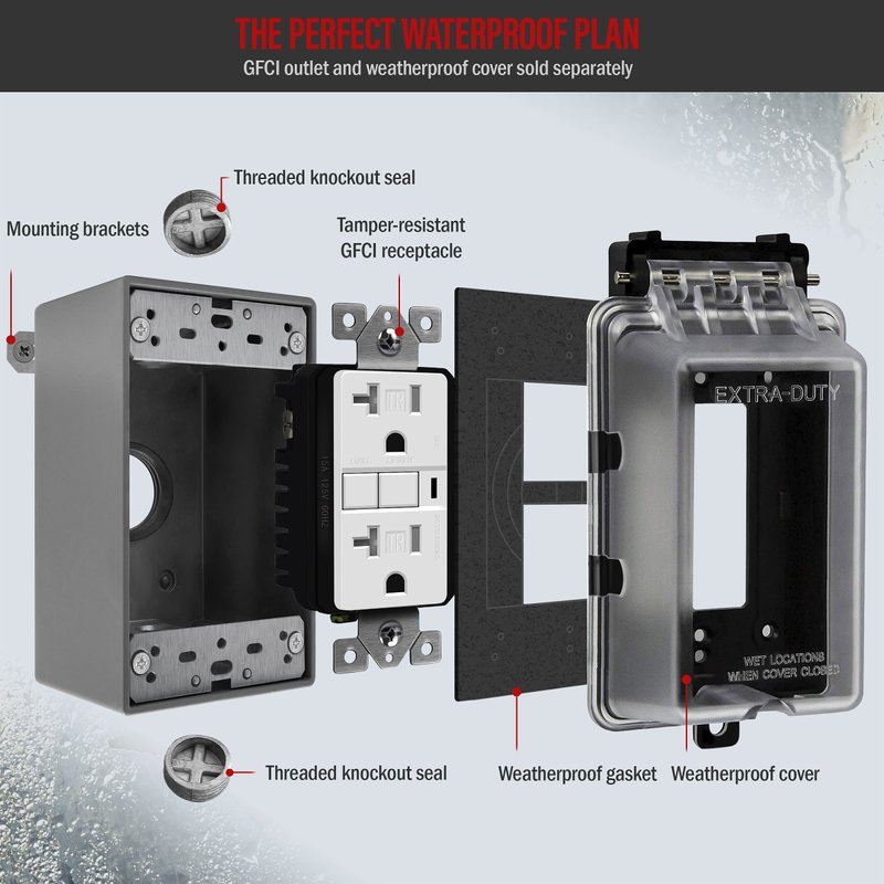 - Die-cast metal construction effectively seals out moisture, dust, debris, and insects to protect outdoor receptacles