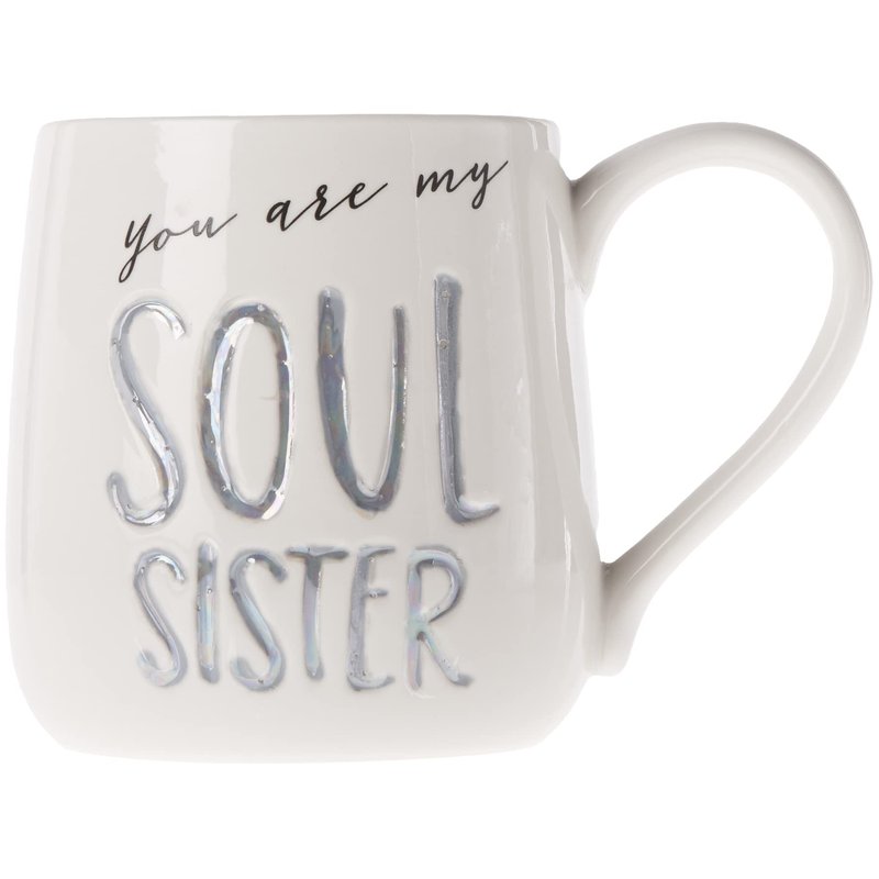 - Our Name is Mud “Soul Sister” mug features engraved and hand-written messaging