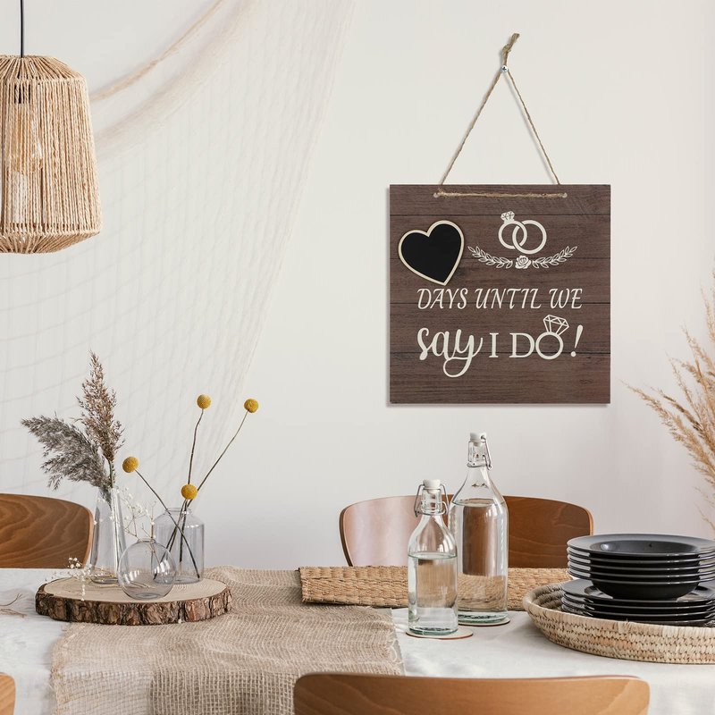Engagement Gift Wedding Countdown Chalkboard Sign for Couples Wooden Wedding Countdown Plaque Sign Wedding Decorative Hanging Ornaments Erasable Blackboard Chalkboard Sign for Boyfriend Girlfriend