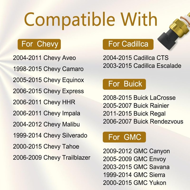 - [Compatible Vehiles]:Compatible With 08-15 Buick LaCrosse, 04-11 Chevy Aveo, 98-15 Chevy Camaro, 05-15 Chevy Equinox, 06-15 Chevy Express ,06-11 Chevy HHR, 06-11 Chevy Impala, 04-12 Chevy Malibu, 99-14 Chevy Silverado, 2000-14 Chevy Suburban, 2000-2015 Chevy Tahoe, 06-09 Chevy Trailblazer, 09-12 GMC Canyon, 05-09 GMC Envoy, 03-15 GMC Savana, 99-14 GMC Sierra, 2000-16 GMC Yukon, 97-03 Isuzu Rodeo, 06-09 Saab 9-7x, 05-09 Saturn Vue and more.