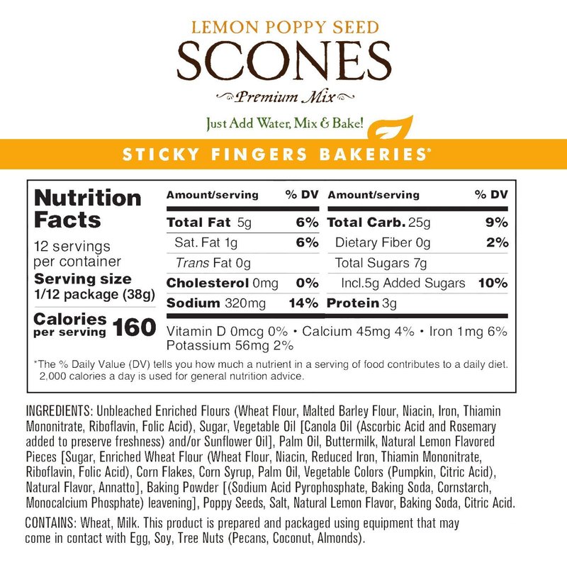 English Scone Mix, Lemon Poppyseed by Sticky Fingers Bakeries – Easy to Make English Scones Fresh Baked, Makes 12 Scones (1 pk)