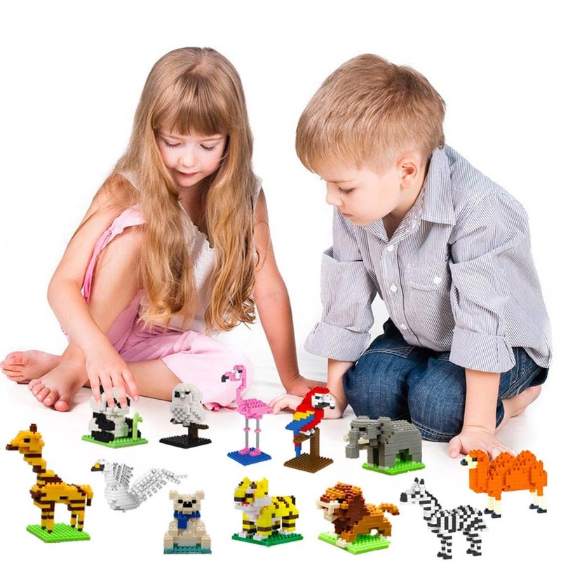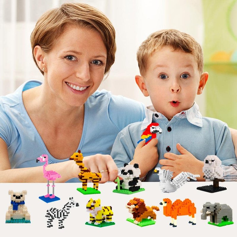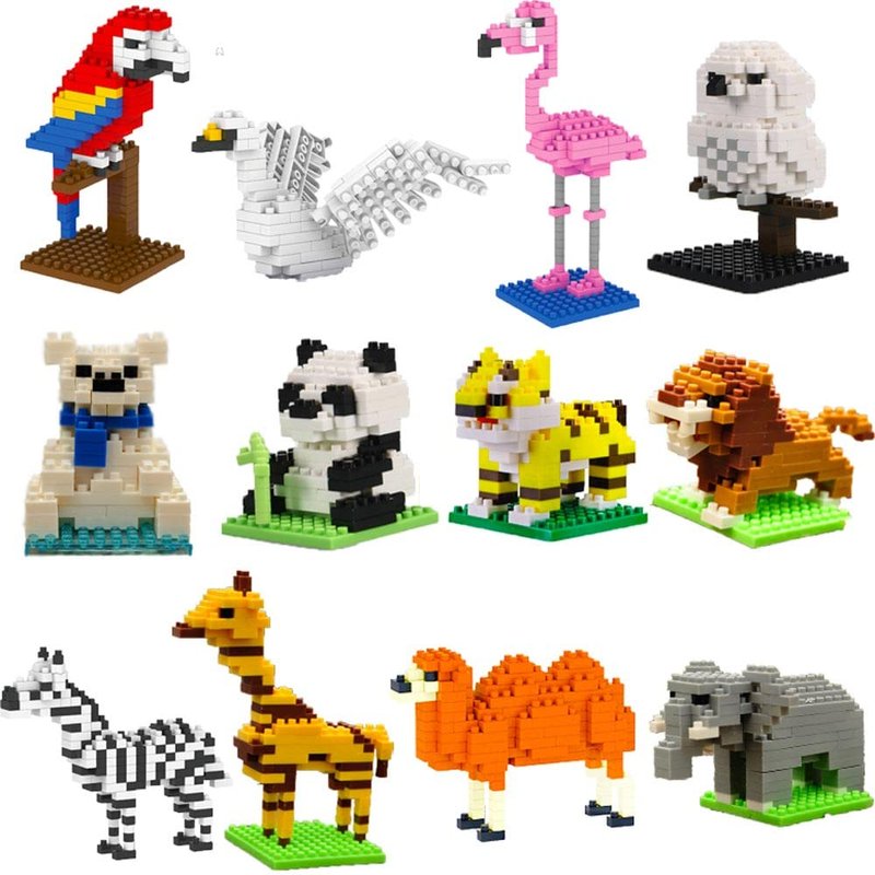 - Cute Forest Animals: This set of building blocks contains 12 different forest animals, such as giraffes, tigers, lions, elephants, zebras, camels, red-crowned cranes, parrots, swans, owls, pandas, white bears, etc., all with exquisite details and cute expressions, making children unable to put them down.