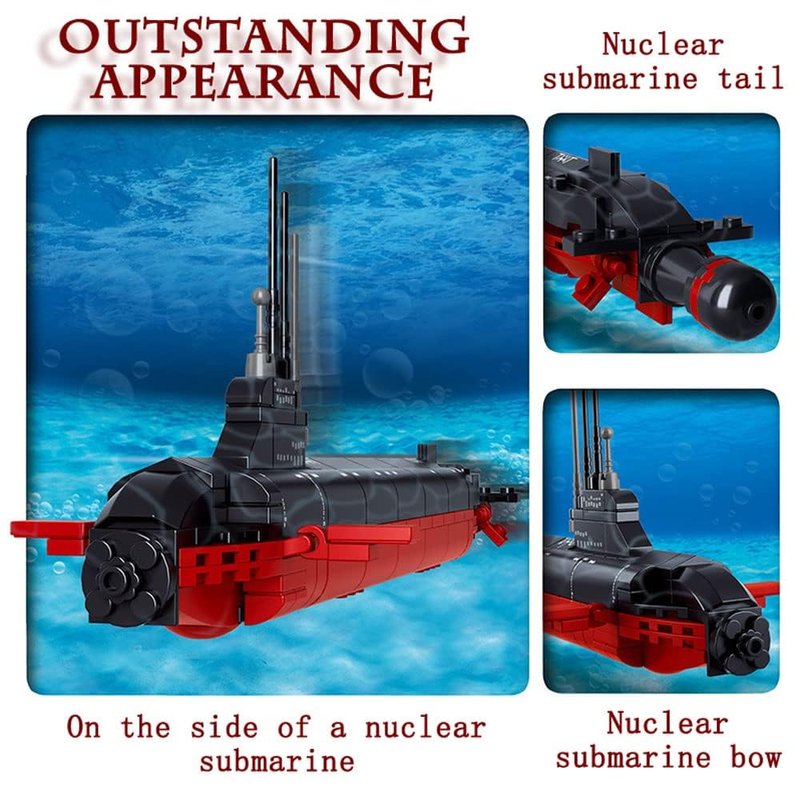 - 【Best Creative Gift】The nuclear submarine building block set is a great preschool education toy that can stimulate children's imagination and promote brain development. In addition, this nuclear submarine model is very suitable for fans of history enthusiasts or naval and military collectors. It will be perfectly displayed on your desk, bookshelf, or shelf as a souvenir.
