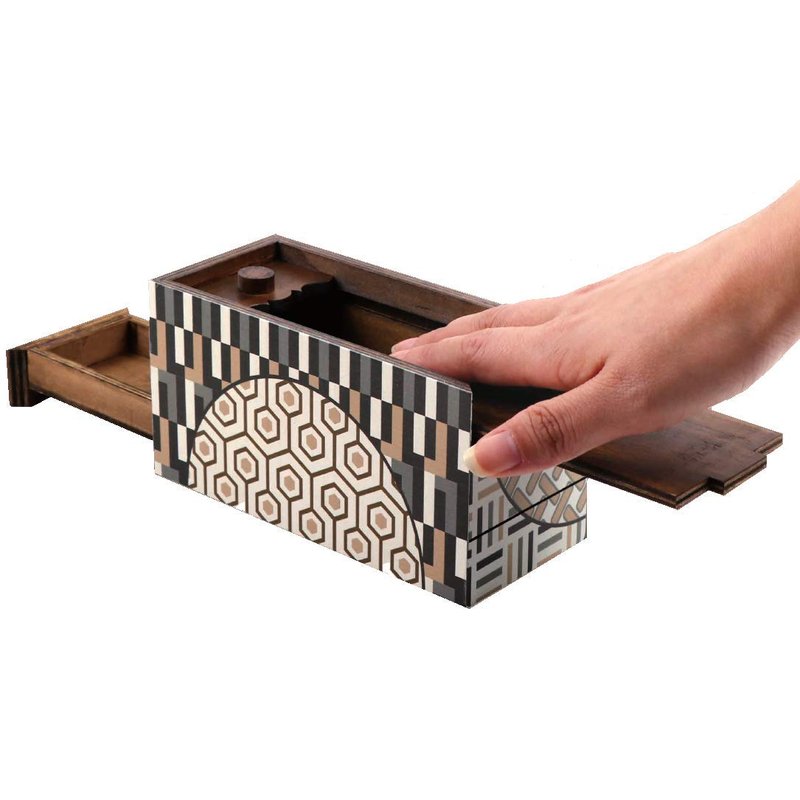 - Made of pine wood, finished in a rich Japanese Puzzle Box Style pattern print.