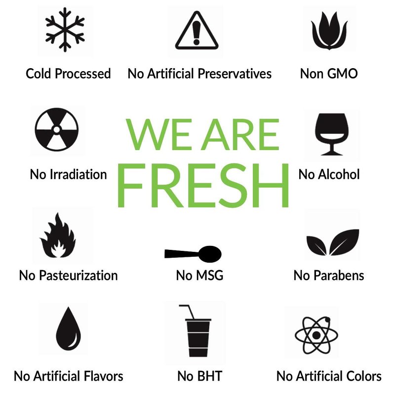 - ZERO SUGAR. No Artificial Colors or Flavors. Gluten Free. Diabetic Friendly. Vegetarian Friendly. No Fish Ingredients. Lactose Free. No Irradiation No Pasteurization. Cold Processed.