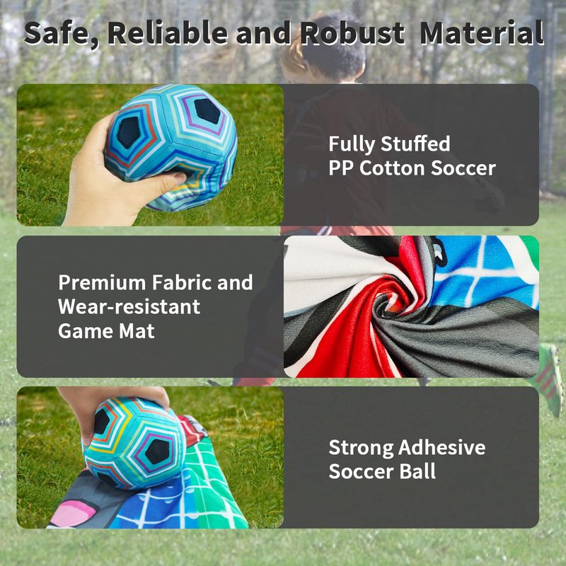 - 【Sticky Soccer Balls】The set includes one specially designed sticky soccer balls that stick to the mat upon impact, replicating the feel of real soccer balls without the concern of them rolling away or getting lost. Kids can enjoy safe and interactive play indoors or outdoors.