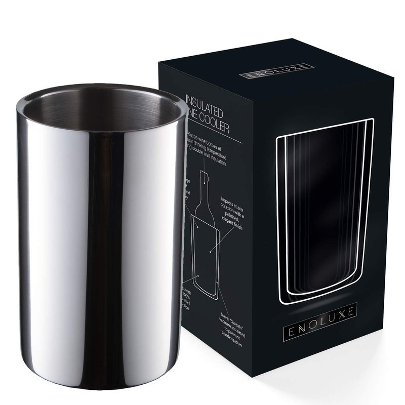 Forget that clunky stone wine chiller and embrace sophisticated wine vibes with the Enoluxe Wine Chiller Bucket. This sleek, single-bottle chiller isn't just for white wine – it's your go-to winery cooler for chilling champagne too. Imagine picnics in the park or lounging on the beach with your mobile, portable wine cooler, or elevate your next party with this silver champagne bucket as the centerpiece. No need for that messy ice container or wine coaster – the double-walled insulator keeps your vino perfectly cold for up to 2 hours, condensation-free- no need to freeze. // Looking for the perfect wine gadget for the wine enthusiasts in your life? Look no further than the Enoluxe Wine Chiller Bucket. It's the ideal blend of style and functionality, making it a unique host or hostess gift or a special present for all wine lovers, women or men. Pair it with Enoluxe's wine accessories like a wine bottle sleeve or a set of wine chilling wands for an unforgettable white wine or champagne gift basket. // Enoluxe offers a wide range of wine coolers for bottles, so you can find the perfect fit for your needs. Explore their collection of copper, gold, and black wine buckets, stone wine chiller, wine chilling coasters, or even a vintage wine cooler for a touch of nostalgia. Feeling adventurous? Try an automatic beverage chiller or blast chiller for rapid cooling. Want to keep your wine ice-cold on the go? A wine bottle icicle, wine chilling stick, or wine chiller rod does the trick! // Whether you're one of the casual wine drinkers or a seasoned connoisseur, Enoluxe has the wine essentials to elevate your experience from bottle to glass. From unique wine bottle coasters to cozy wine jackets and ice molds, discover a world of wine themed items designed to make every sip enjoyable. So pop that cold cork, ditch the old, stick with the new, and experience the difference with Enoluxe. Cheers to good wine and good times!