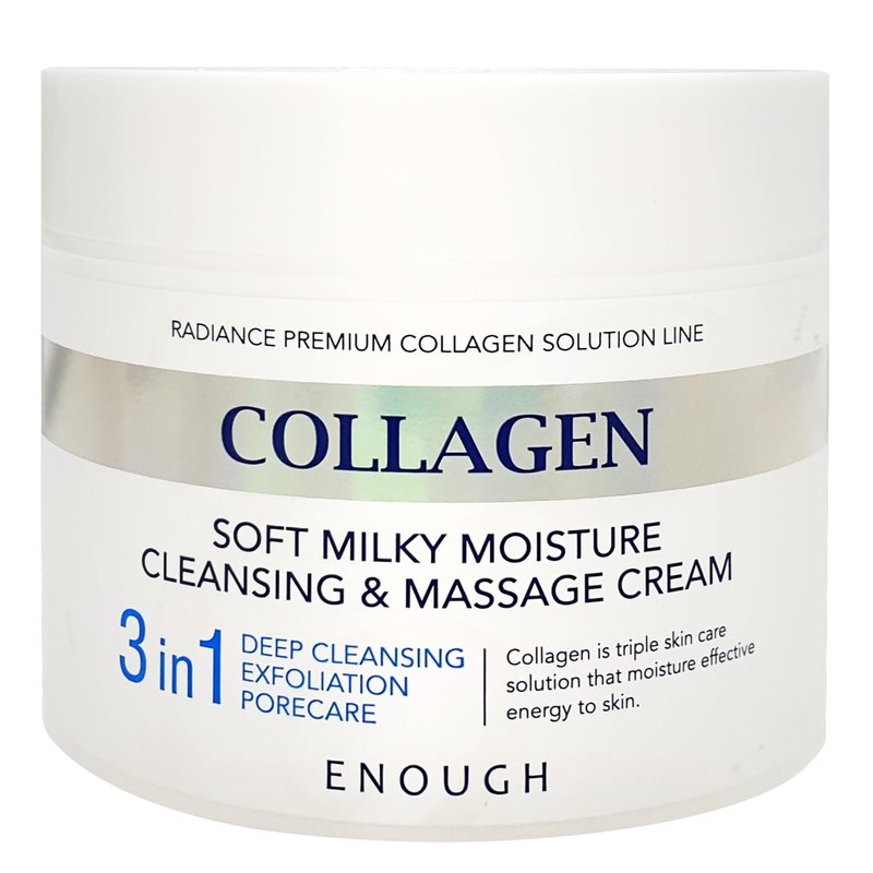 Transform your skincare routine with Enough Collagen Soft Milky Moisture Cleansing & Massage Cream. This unique 3-in-1 formula not only deeply cleanses and exfoliates but also provides intensive pore care. Infused with hydrolyzed collagen, it supports skin elasticity while moisturizing, leaving your skin feeling soft and rejuvenated. Ideal for daily use, it preps your skin perfectly for makeup application or end-of-day cleansing. Elevate your skincare routine with the luxurious ENOUGH Collagen Soft Milky Moisture Cleansing & Massage Cream. This innovative Korean skincare product combines the benefits of a deep cleansing face wash with the nourishing properties of a hydrating massage cream. Enriched with collagen, this soft, milky formula gently removes makeup, dirt, and impurities while providing intense hydration and nourishment to your skin. Perfect for all skin types, including sensitive and dry skin, this cream ensures your skin stays soft, supple, and moisturized after every use. The lightweight texture effortlessly glides over the skin, delivering a soothing and relaxing massage that helps to improve circulation and revitalize your complexion. Whether you're looking to cleanse, hydrate, or indulge in a calming massage, the ENOUGH Collagen Soft Milky Moisture Cleansing & Massage Cream offers a versatile and effective solution. Add this Korean skincare essential to your daily routine to achieve clean, refreshed, and radiant skin.
