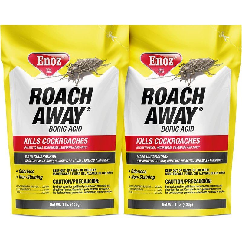 Enoz Roach Away Boric Acid Powder - (2 Pack) 16 oz Bag - Kills Cockroaches, Silverfish, and Ants - Boric Acid Roach Killer and Ant Killer Powder
