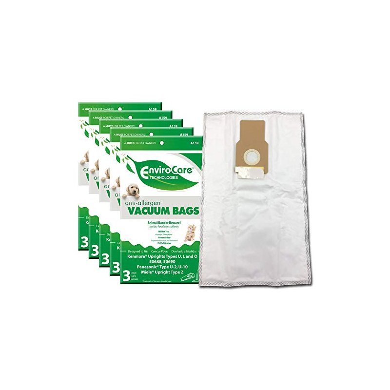 - EnviroCare Replacement Allergen Vacuum Cleaner Bags designed to fit Kenmore 50688 and 50690 Type U, L, and O, Panasonic Type U-2, U-10 Uprights 15 Pack