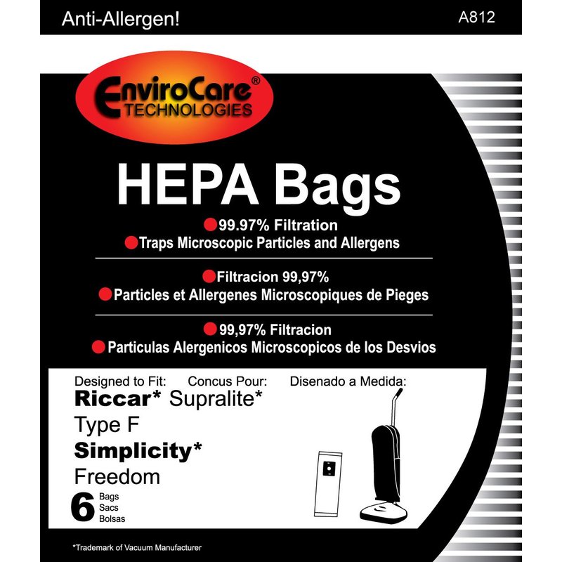 - EnviroCare Replacement HEPA Filtration Vacuum Cleaner Dust Bags made to fit Riccar Supralite Type F and Simplicty Freedom Uprights