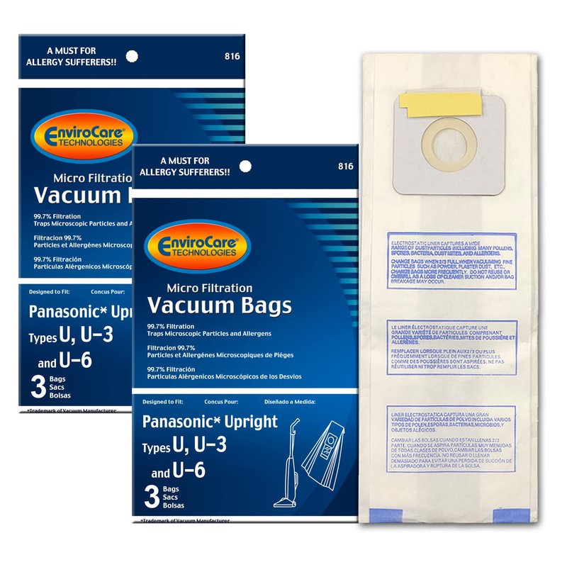 - EnviroCare Replacement Micro Filtration Vacuum Cleaner Dust Bags designed to fit Panasonic Types 3, U-6 6 Pack