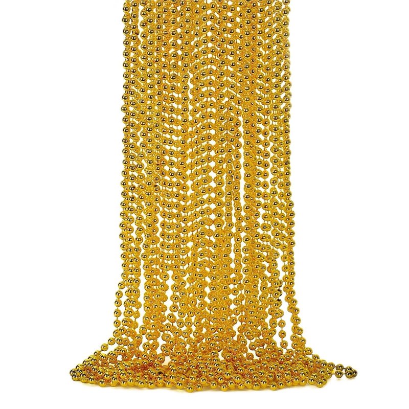 EOBOH 12PCS Mardi Gras Beads, Gold Beaded Necklace Stuff Set, 33" Mardi Gras Christmas Beads Necklace Costume Bulk, Festival Parade Throw Accessory Sets for Mardi Gras St Patricks Day Celebrations