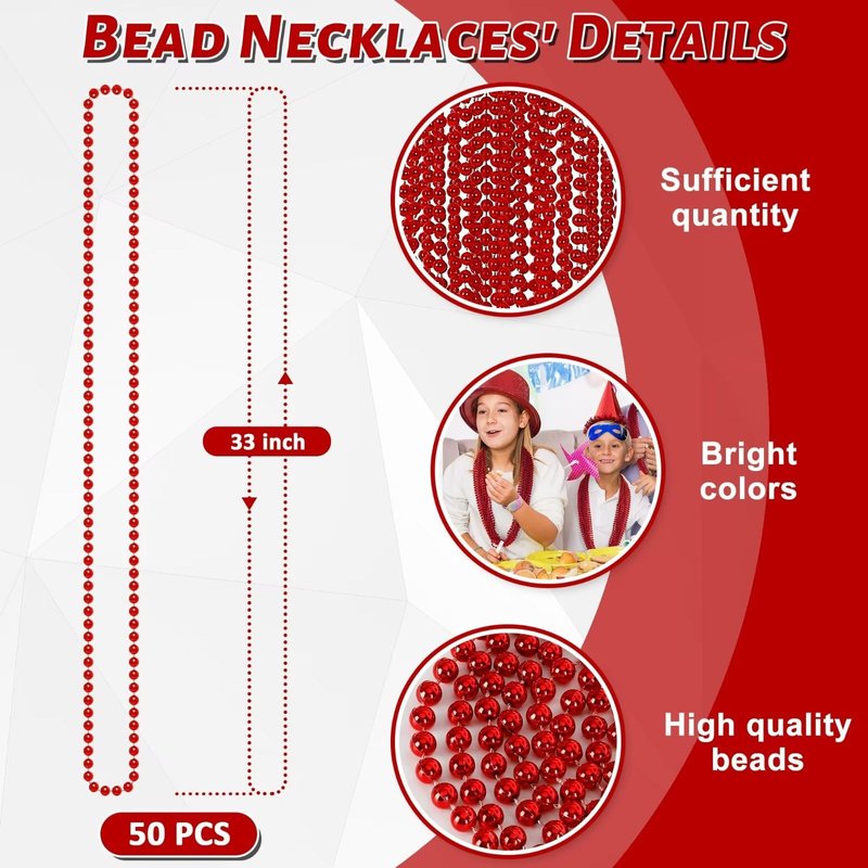 EOBOH 50PCS Bead Necklace, Red Christmas Bead Stuff Party Favors, 33" Necklaces Festival Parade Throw Accessories for Wedding Birthday Valentines Mardi Gras Christmas Celebrations Decorations
