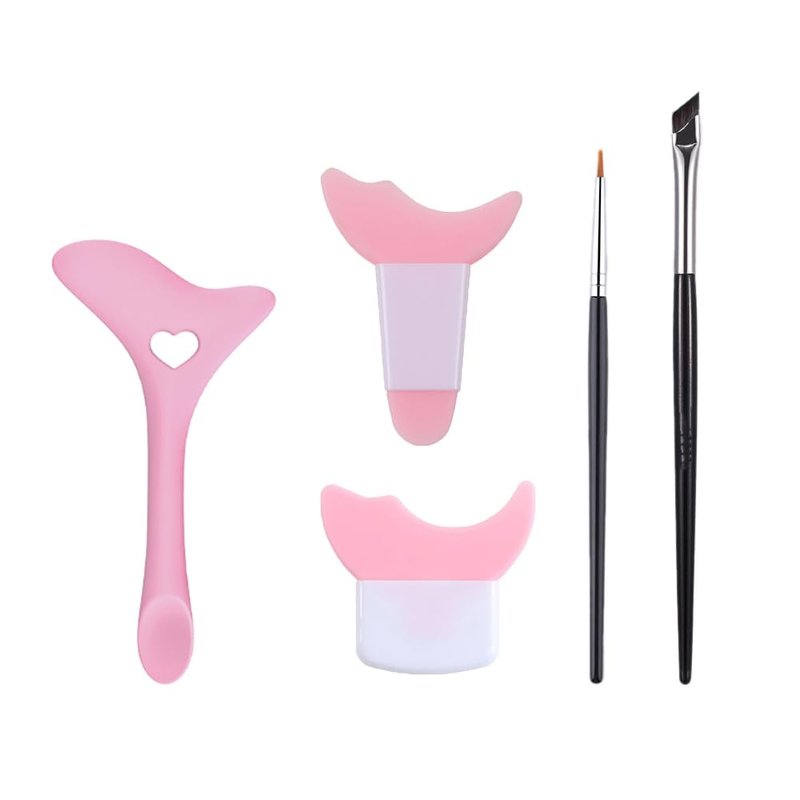 Eoopoon Eyeliner Stencils, 5Pcs Eyeliner Brush Set, Reusable Eyeliner Tool for Eyes Wing, Multifunctional Silicone Eyeliner Aid Mascara Shield, Beginners Friendly (Pink)