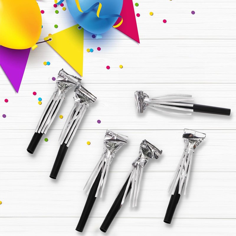 You will receive 60 silver noise makers in one package, adequate quantity for you to satisfy your demands for use and replacement. And you could also share them with your friends and enjoy parties together by making noises. Made of high-quality PP and PS material, our party blowers are safe and non-toxic to touch or blow, not easy to break or tear, reliable for a longer period. Our musical blowouts whistles measures approximately 0.5"D*5"H, suitable size to hold on hands easily for most people, lightweight and portable so you can carry them everywhere you go. The noisemakers could produce loud and cheerful sounds easily to warm up parties, ideal party favors for New Year, Christmas, Halloween, Birthday, bridal shower, sporting events, etc.