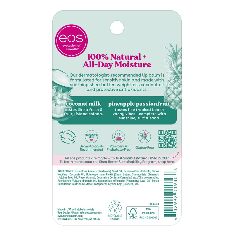 eos 100% Natural Lip Balm- Coconut Milk and Pineapple Passionfruit, All-Day Moisture Lip Care, 0.14 oz, 2 Pack