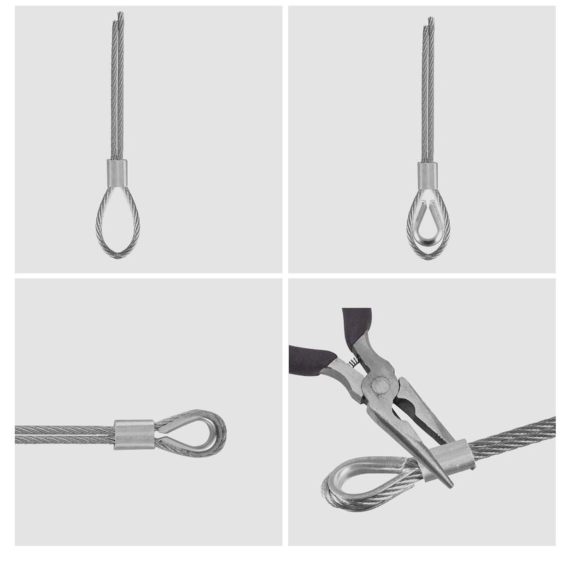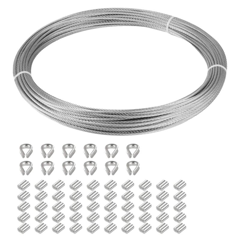 - Package Content: 100Ft 316 stainless steel cable rope, 50 pieces aluminum sleeves, 12 pieces thimbles.
