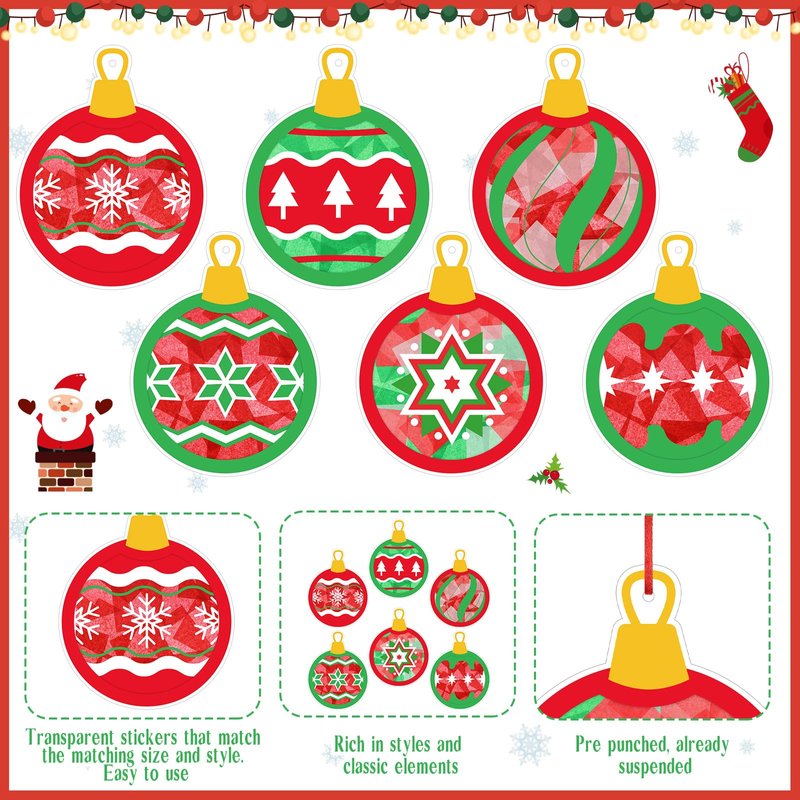 - Diverse and Easy to Use: the tissue acetates crafts boast fun, festive gingerbread man theme, designed with 6 different styles, bringing excitement, easy to use, DIY the stickers and tissue paper, thread the ribbon through the predrilled holes for hanging