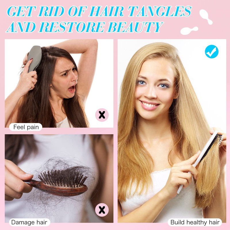 - Keeps Hair Organized: the mini travel hair brushes feature soft air cushioned teeth that won't tear or pull out hair, gliding through hair with ease, gently removing knots and reducing scalp pressure to some degree
