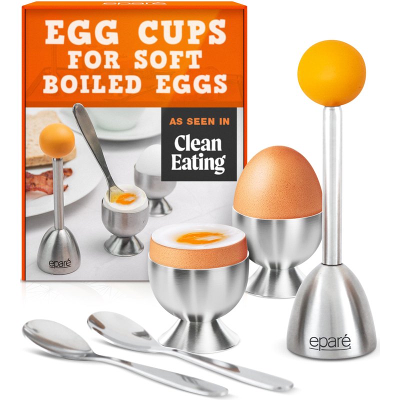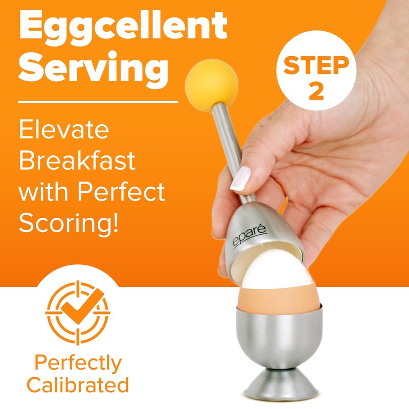 Eparé Egg Topper Cutter - Egg Cups & Holder for Soft Boiled Eggs - Egg Cracker Tool Set - Stainless Steel Soft Boiled Egg Cutter - Egg Spoons for Soft Boiled Eggs