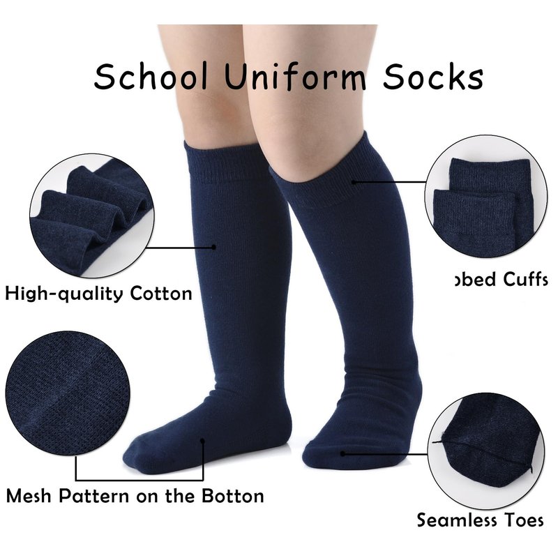 - ALL-MATCHING KNEE HIGHS :Solid plain colors (Four basic colors:black, white, navy, charcoal),school students' must have.Ideal for school uniform,school events,dress shoes, recitals,play,and everyday.