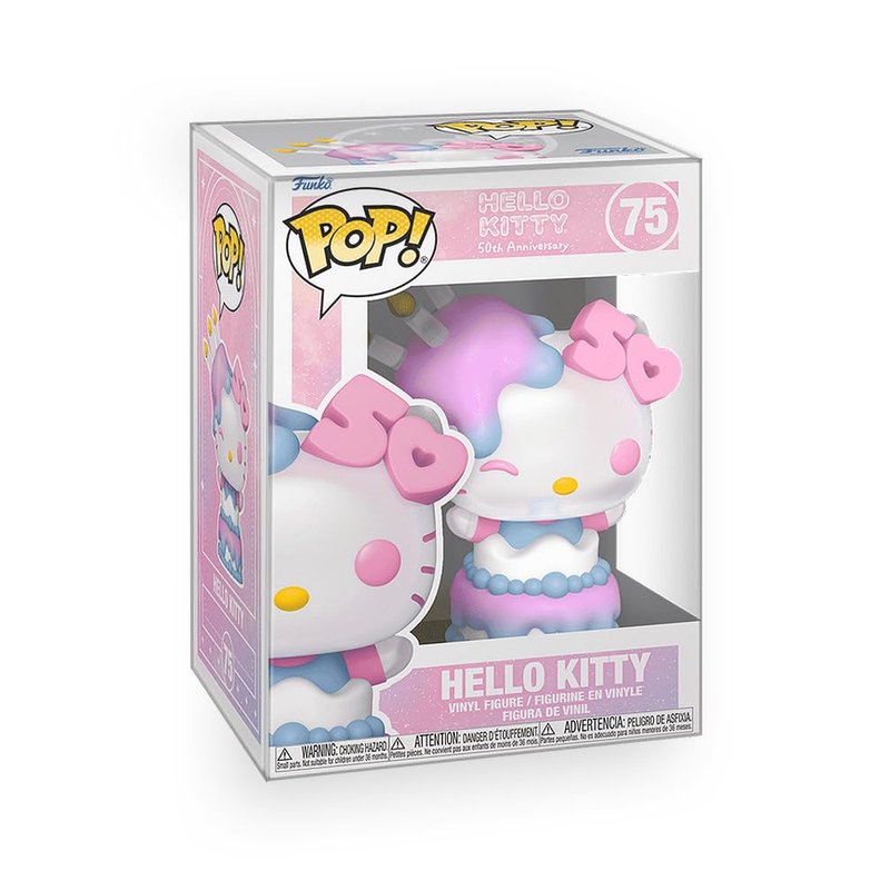 Epic Collectibles Pop Hello Kitty - Set of 2 - Hello Kitty with Birthday Cake and Balloons 50th Anniversary Vinyl Figures Bundle with Compatible Funko Box Protector