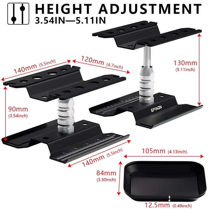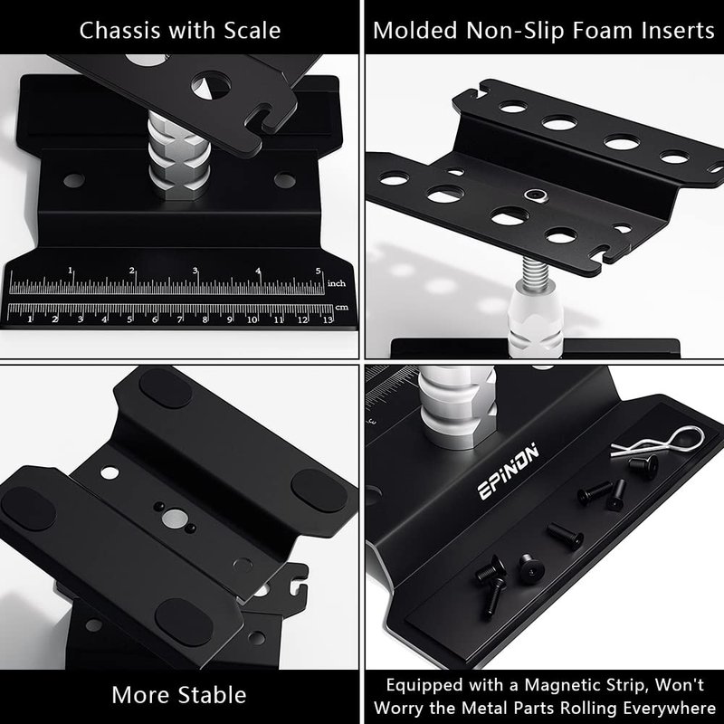 - 【Adjustable Height】RC work stand can adjust the height from 3.54in to 5.11in, a repair stand with an adjustable height function allows you to find a comfortable position to repair your car model.