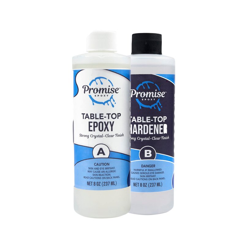 Epoxy Resin Promise Table Top 2-Part- 16 Ounce High Gloss (8 oz Resin + 8 oz Gal Hardener) Transform Your DIY Projects with Crystal Clear Finish - Ideal for Bar Tables, Tabletops, Countertops & More