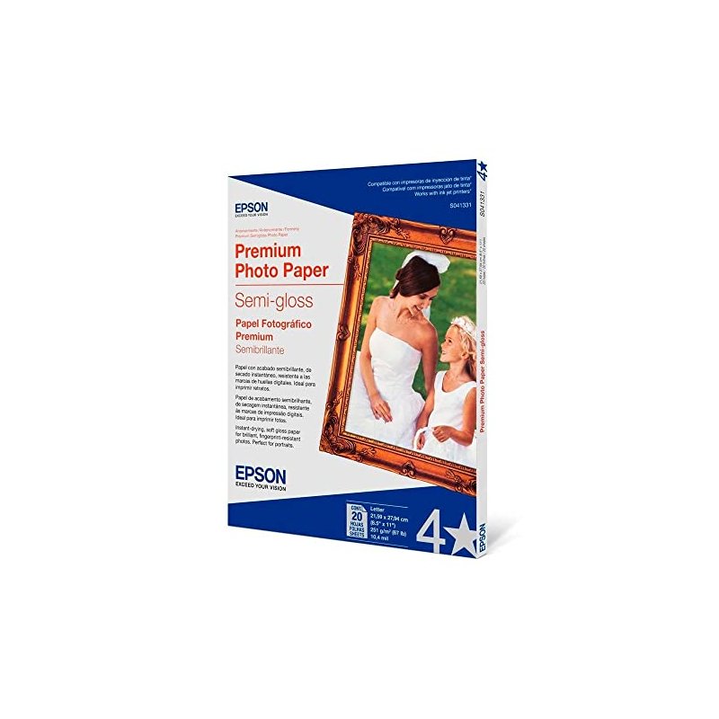 Epson Premium Photo Paper SEMI-GLOSS (8.5x11 Inches, 20 Sheets) (S041331) , White