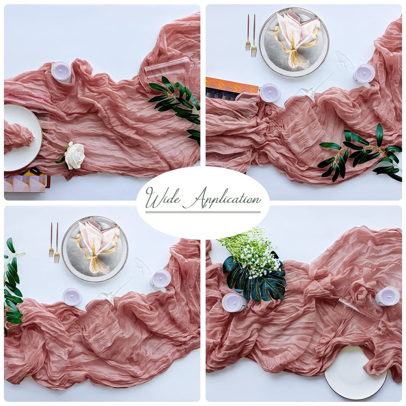 - 🌸Multi Purpose Gauze Fabric: Our dusty pink table runners add softness and elegance for boho or vintage wedding backdrops, arches and flora, birthday party, Mother's day, bridal and baby shower, centerpieces.