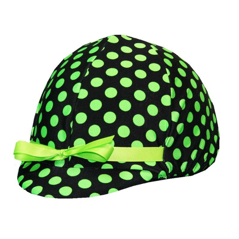 Equestrian Riding Helmet Cover - Black with Lime Polka Dots