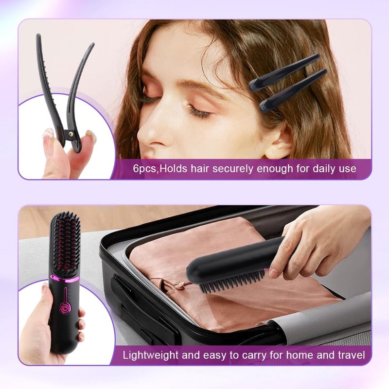 - 【PACKAGE CONTENT】You will receive 1pc black cordless hair straightener brush and 6pcs black plastic hair traceless clips, practical hair styling tool set, duckbill hair clip can firmly fix your hair when styling is needed, enough for daily use.