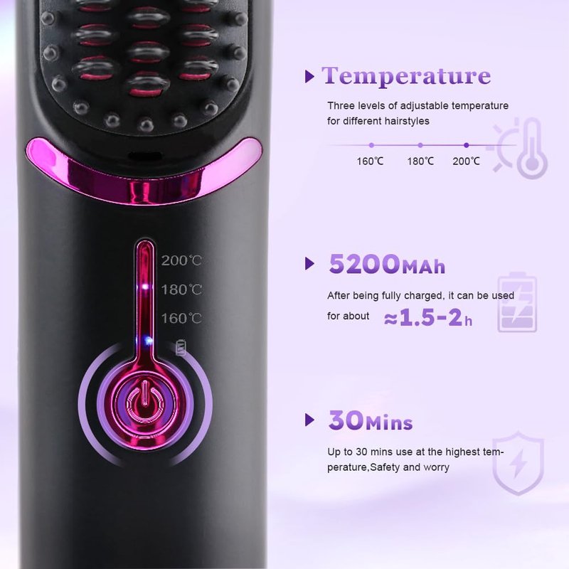 - 【CORDLESS AND RECHARGEABLE】The hair straightener brush has a built-in powerful and large-capacity rechargeable battery. It can be used for about 1.5-2 hours after being fully charged. It comes with a USB cable, which is safe and convenient. Automatically shut down after 30 minutes. Wireless design lets you get rid of cables.