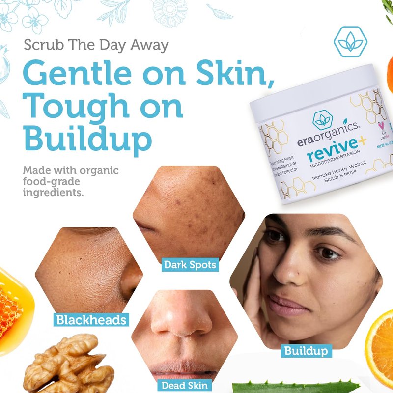 Era Organics Microdermabrasion Facial Scrub & Face Exfoliator - Spa Quality Exfoliating Face Mask with Manuka Honey & Walnut - Moisturizing Facial Exfoliant for Dry Skin, Blackheads & Wrinkles (4 oz)